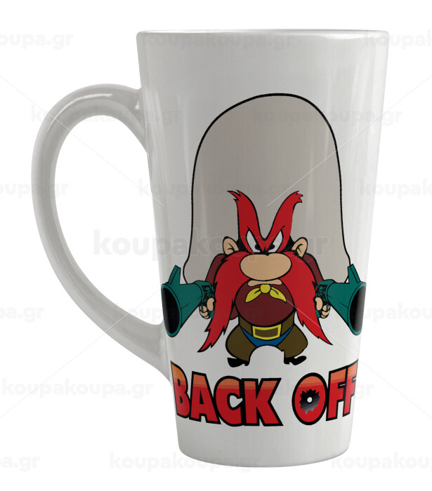 Yosemite Sam Back OFF, Κούπα κωνική Latte Μεγάλη, κεραμική, 450ml