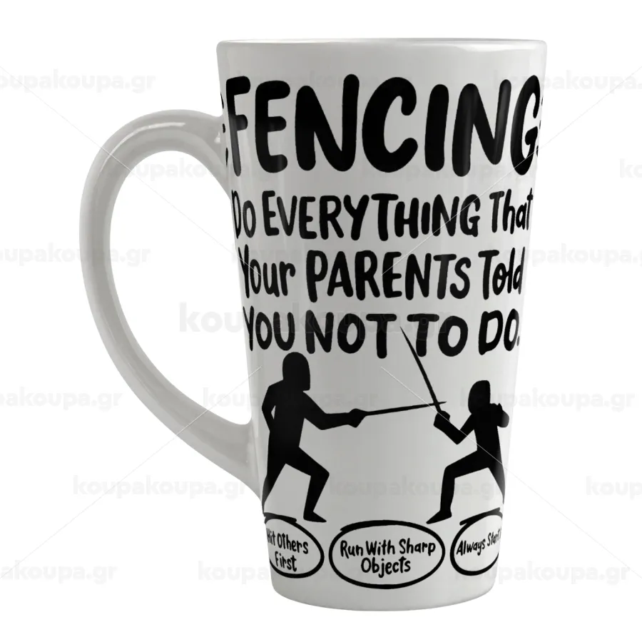 Fencing, do everything that your parents told you not to do., Κούπα κωνική Latte Μεγάλη, κεραμική, 450ml