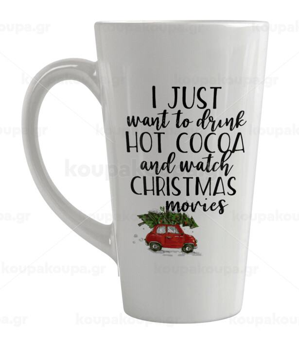 I just want to drink hot cocoa and watch christmas movies mini cooper, Κούπα κωνική Latte Μεγάλη, κεραμική, 450ml