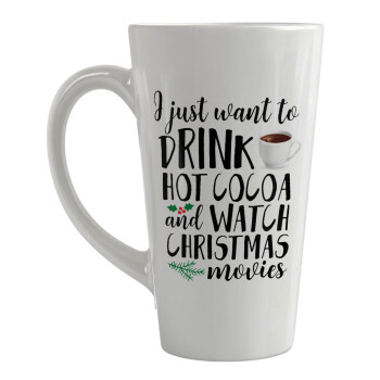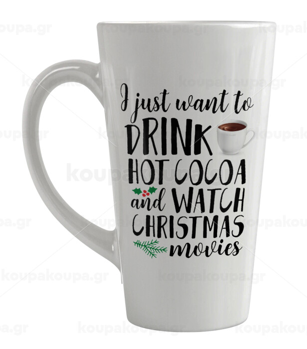 I just want to drink hot cocoa and watch christmas movies, Κούπα κωνική Latte Μεγάλη, κεραμική, 450ml