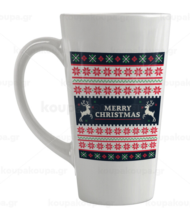 Merry Christmas Vintage, Κούπα κωνική Latte Μεγάλη, κεραμική, 450ml