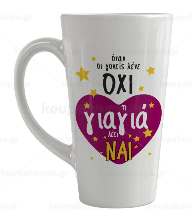 Όταν οι γονείς λένε ΟΧΙ, η γιαγιά λέει ΝΑΙ, Κούπα κωνική Latte Μεγάλη, κεραμική, 450ml