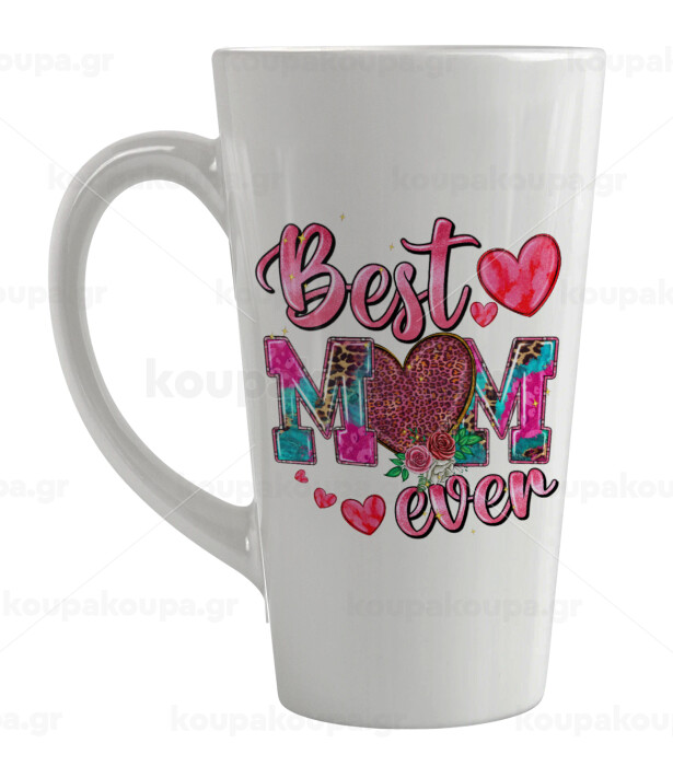 Best mom ever Mother's Day pink, Κούπα κωνική Latte Μεγάλη, κεραμική, 450ml