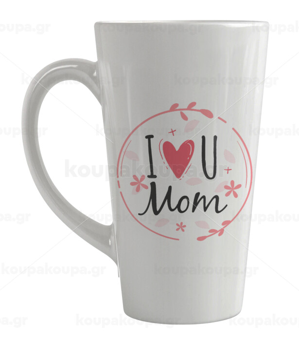 I Love you Mom pink, Κούπα κωνική Latte Μεγάλη, κεραμική, 450ml