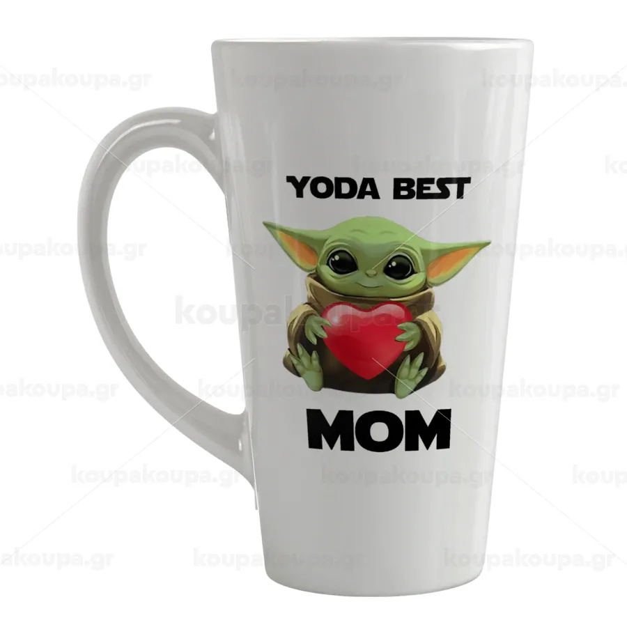 Yoda Best mom, Κούπα κωνική Latte Μεγάλη, κεραμική, 450ml