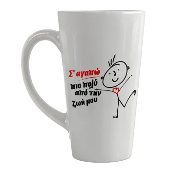 Σ'αγαπώ πιο πολύ από την ζωή μου!!!, Κούπα κωνική Latte Μεγάλη, κεραμική, 450ml