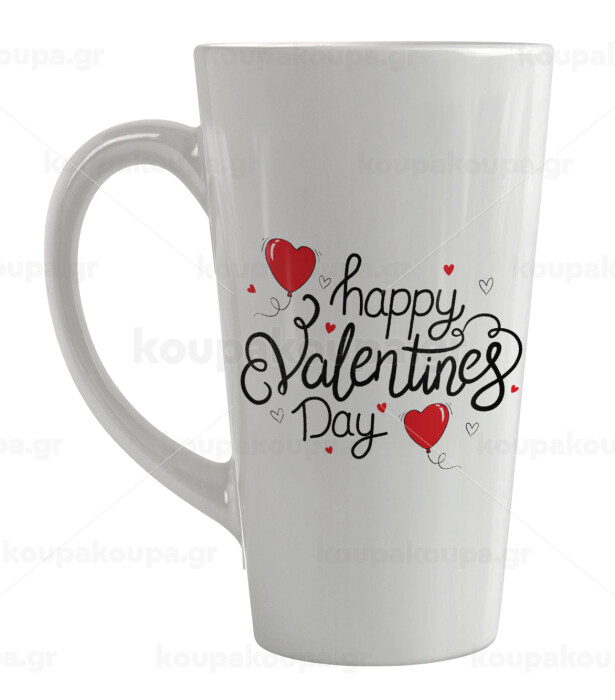 Happy Valentines Day!!!, Κούπα κωνική Latte Μεγάλη, κεραμική, 450ml