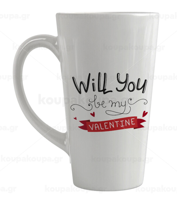 Will you be my Valentine???, Κούπα κωνική Latte Μεγάλη, κεραμική, 450ml