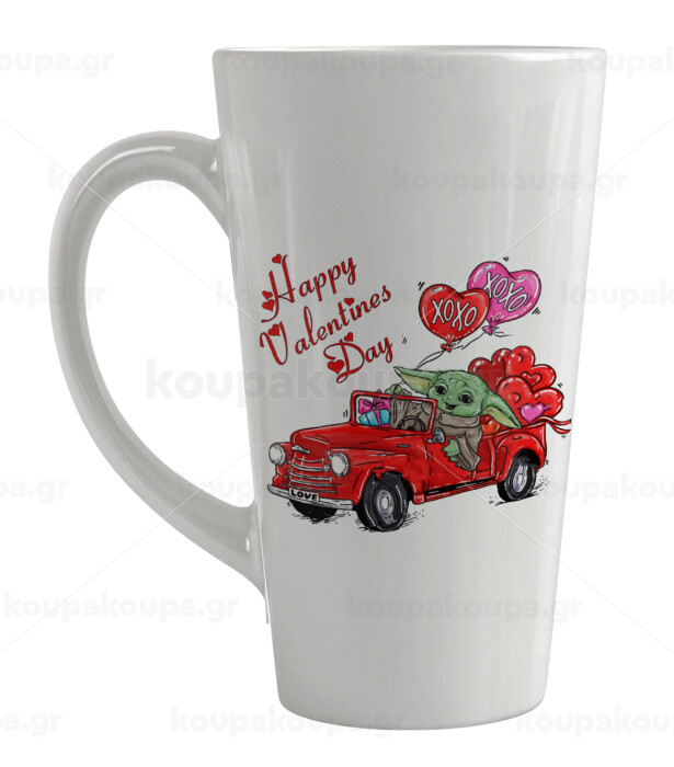 Yoda, happy valentines day (xoxo), Κούπα κωνική Latte Μεγάλη, κεραμική, 450ml
