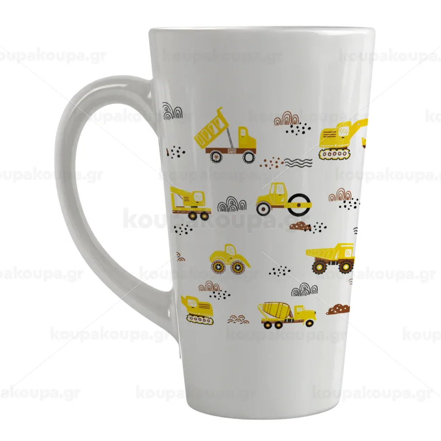 Αμαξάκια φορτωτές και μπουλντόζες, Κούπα κωνική Latte Μεγάλη, κεραμική, 450ml