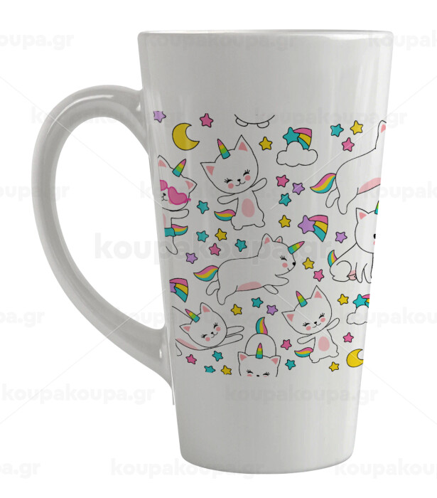 Cats unicorns, Κούπα κωνική Latte Μεγάλη, κεραμική, 450ml