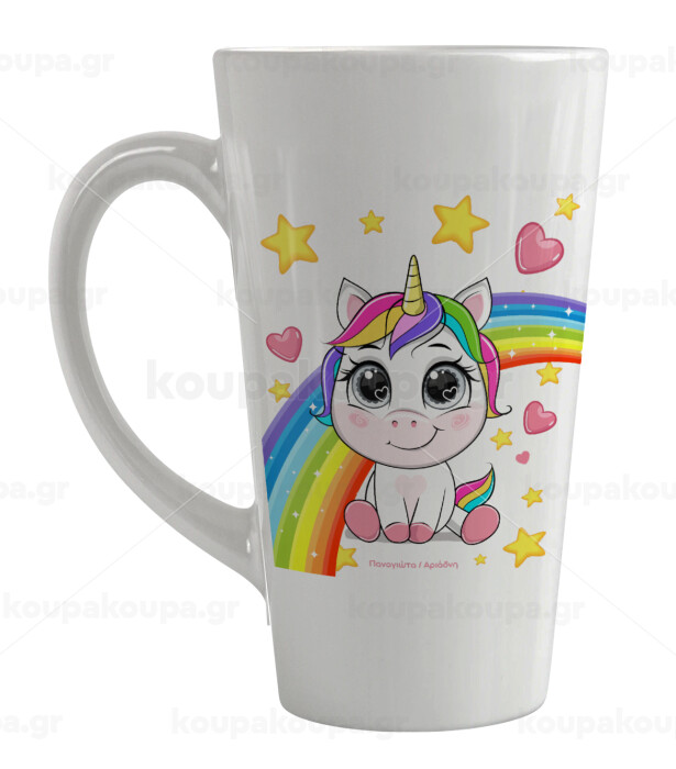 Unicorn baby με όνομα, Κούπα κωνική Latte Μεγάλη, κεραμική, 450ml