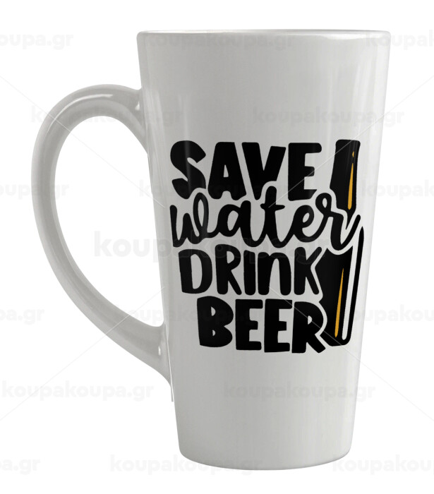 Save Water, Drink BEER, Κούπα κωνική Latte Μεγάλη, κεραμική, 450ml