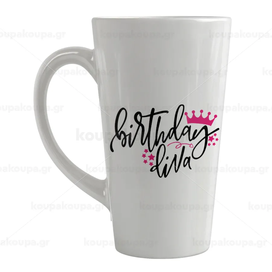Birthday Diva queen, Κούπα κωνική Latte Μεγάλη, κεραμική, 450ml