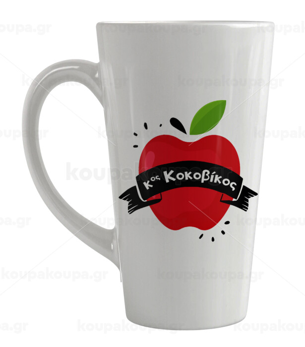 Αναμνηστικό Δώρο Δασκάλου Κόκκινο Μήλο, Κούπα κωνική Latte Μεγάλη, κεραμική, 450ml
