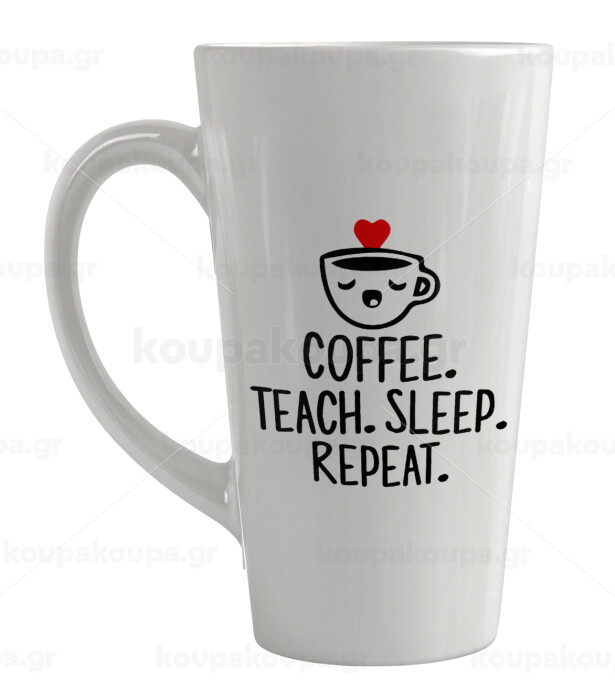 Coffee Teach Sleep Repeat, Κούπα κωνική Latte Μεγάλη, κεραμική, 450ml