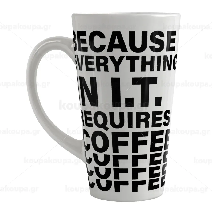 Because everything in I.T. requires coffee, Κούπα κωνική Latte Μεγάλη, κεραμική, 450ml