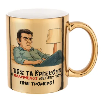 ΠΩΣ ΤΑ ΒΡΙΣΚΟΥΝ ΟΙ ΒΛΑ....ΝΟΙ ΜΕΤΑΞΥ ΤΟΥΣ, ΕΙΝΑΙ ΤΡΟΜΕΡΟ!!!, Κούπα κεραμική, χρυσή καθρέπτης, 330ml