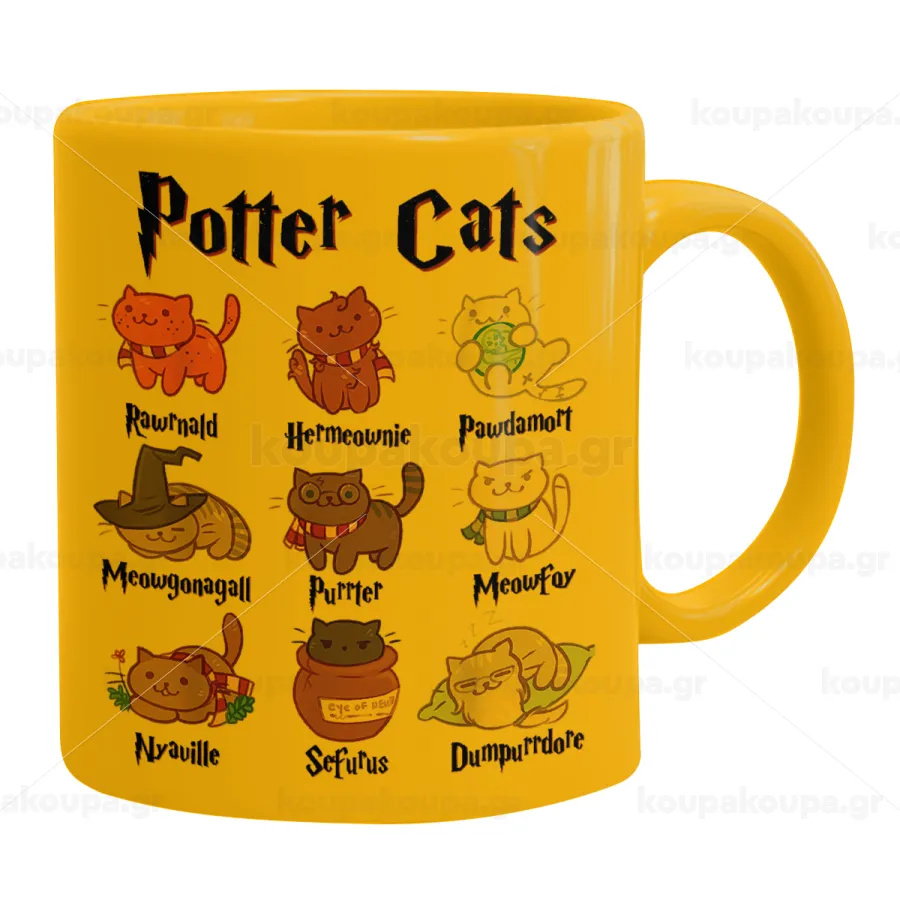 Potter Cats, Κούπα, κεραμική κίτρινη, 330ml