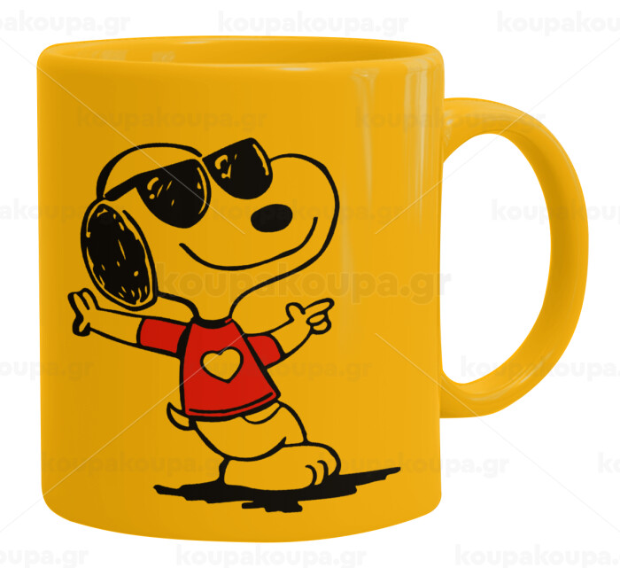 Snoopy καρδούλα, Κούπα, κεραμική κίτρινη, 330ml