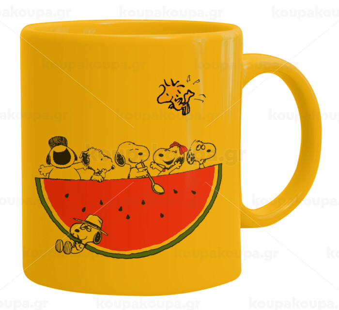 Snoopy summer, Κούπα, κεραμική κίτρινη, 330ml