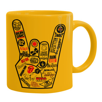 Best Rock Bands hand, Κούπα, κεραμική κίτρινη, 330ml
