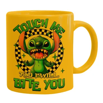 Stitch Touch Me And I Will Bite You, Κούπα, κεραμική κίτρινη, 330ml