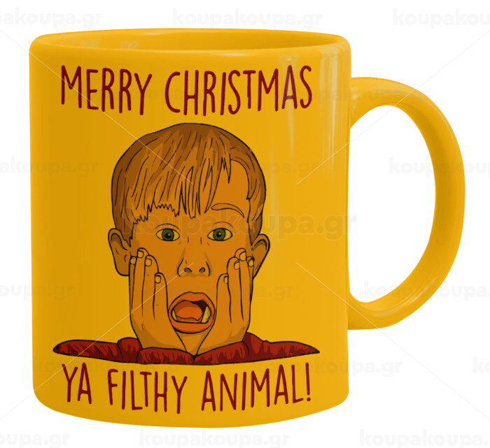 home alone, Merry Christmas ya filthy animal, Κούπα, κεραμική κίτρινη, 330ml