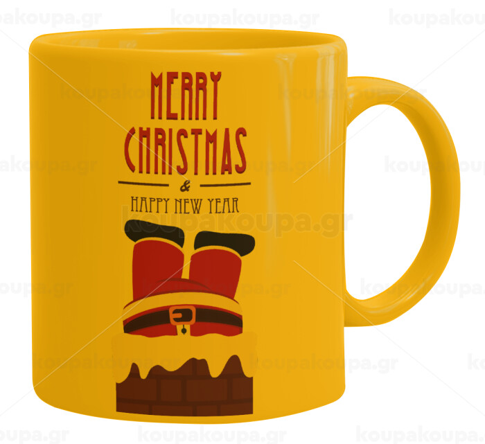 Merry christmas chimney, Κούπα, κεραμική κίτρινη, 330ml