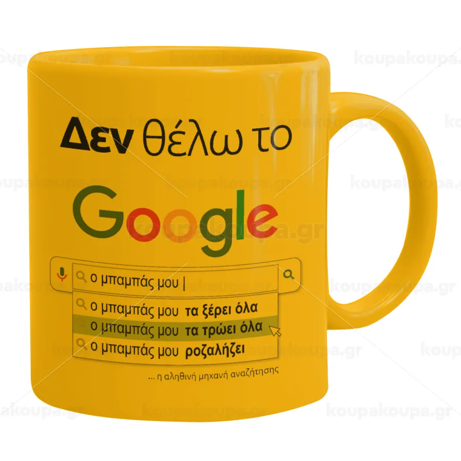 Δεν θέλω το Google, ο μπαμπάς μου..., Κούπα, κεραμική κίτρινη, 330ml