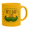 Best dad ever μπλε μουστάκι, Κούπα, κεραμική κίτρινη, 330ml