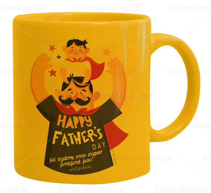 Happy Fathers Day με όνομα, Κούπα, κεραμική κίτρινη, 330ml