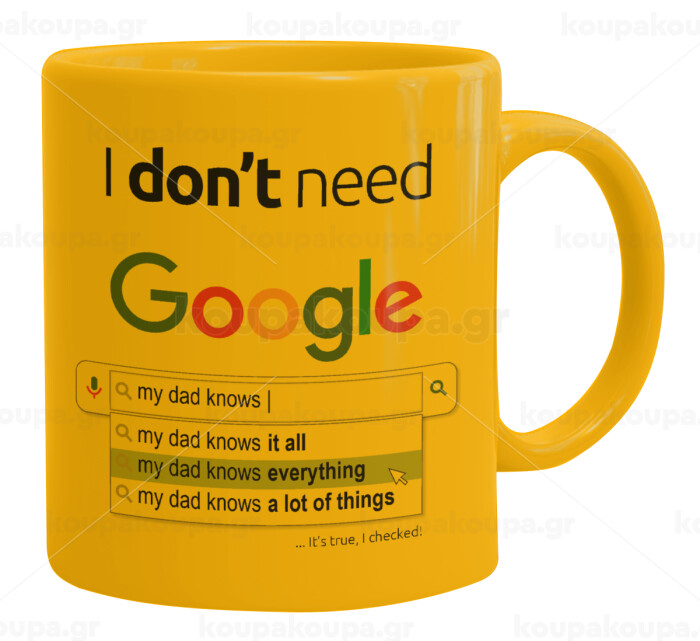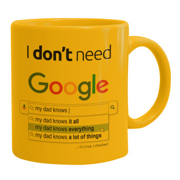 I don't need Google my dad..., Κούπα, κεραμική κίτρινη, 330ml