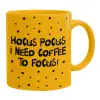 Hocus pocus i need coffee to focus - halloween, Κούπα, κεραμική κίτρινη, 330ml