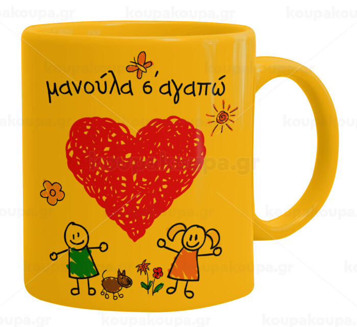 Μανούλα σ'αγαπώ!, Κούπα, κεραμική κίτρινη, 330ml