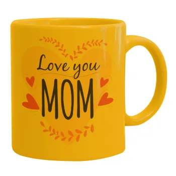 Mother's day I Love you Mom heart, Κούπα, κεραμική κίτρινη, 330ml