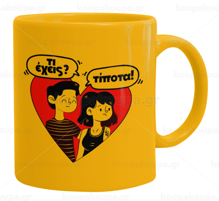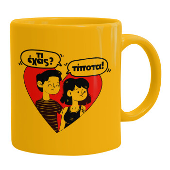 Τι έχεις? Τίποτα!, Κούπα, κεραμική κίτρινη, 330ml