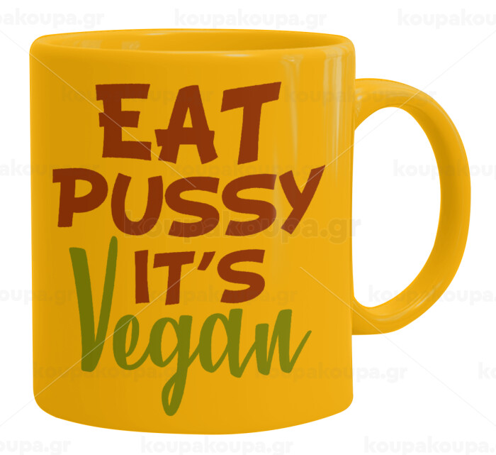 EAT pussy it's vegan, Κούπα, κεραμική κίτρινη, 330ml