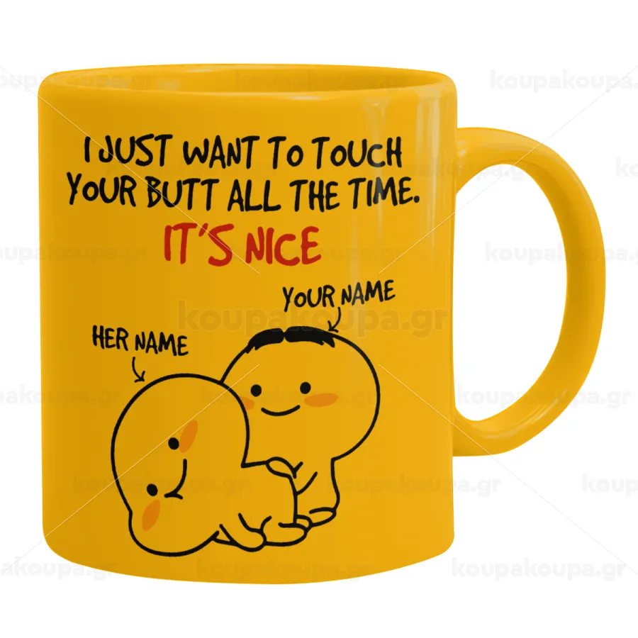 I Just Want To Touch Your Butt All The Time, Κούπα, κεραμική κίτρινη, 330ml