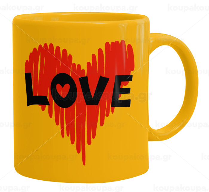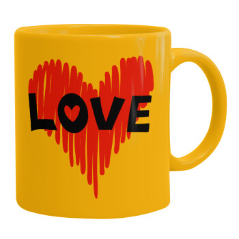 I Love You red heart, Κούπα, κεραμική κίτρινη, 330ml
