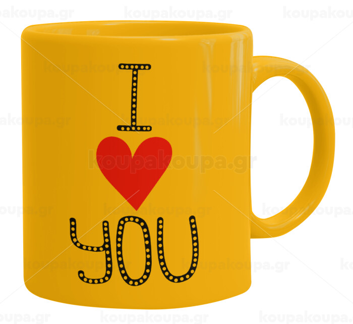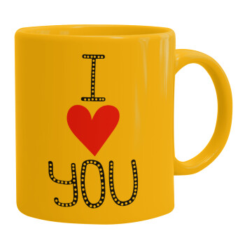 I Love You small dots, Κούπα, κεραμική κίτρινη, 330ml