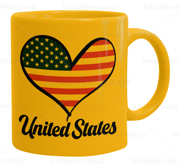USA flag, Κούπα, κεραμική κίτρινη, 330ml