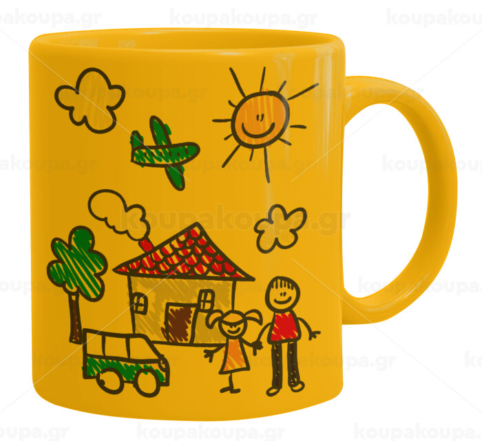 Παιδική ζωγραφιά, Κούπα, κεραμική κίτρινη, 330ml