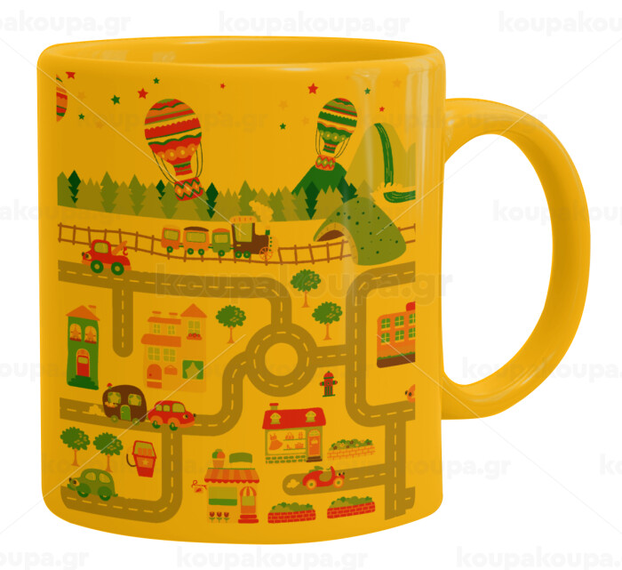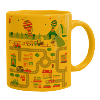 City road track maps, Κούπα, κεραμική κίτρινη, 330ml