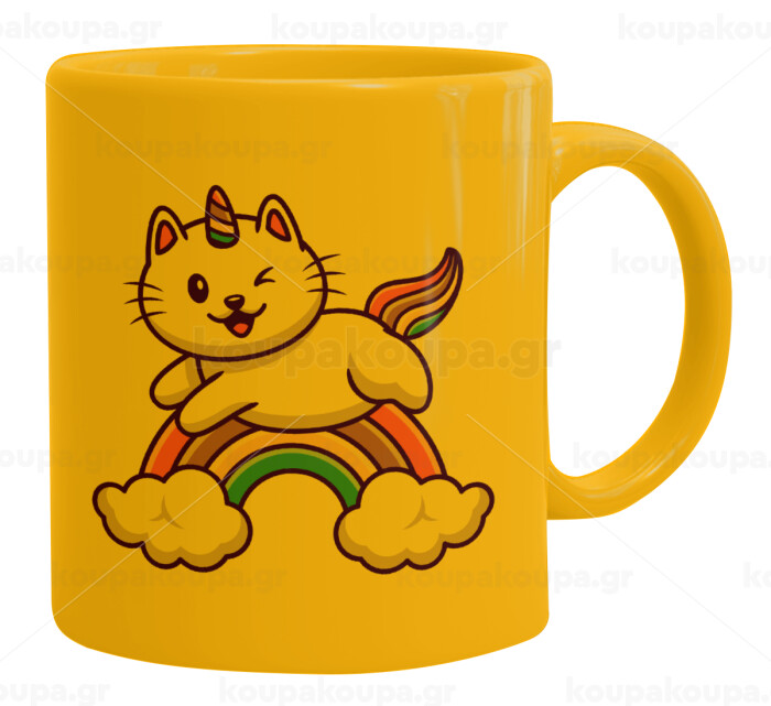 Cute cat unicorn, Κούπα, κεραμική κίτρινη, 330ml