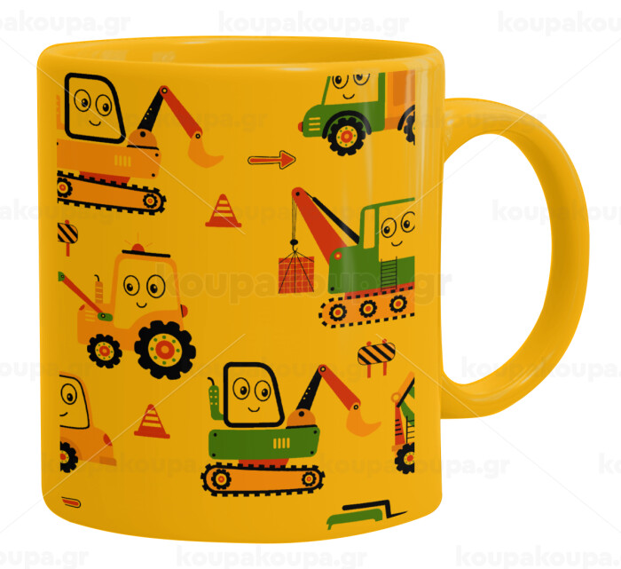 Hand drawing building truck, Κούπα, κεραμική κίτρινη, 330ml