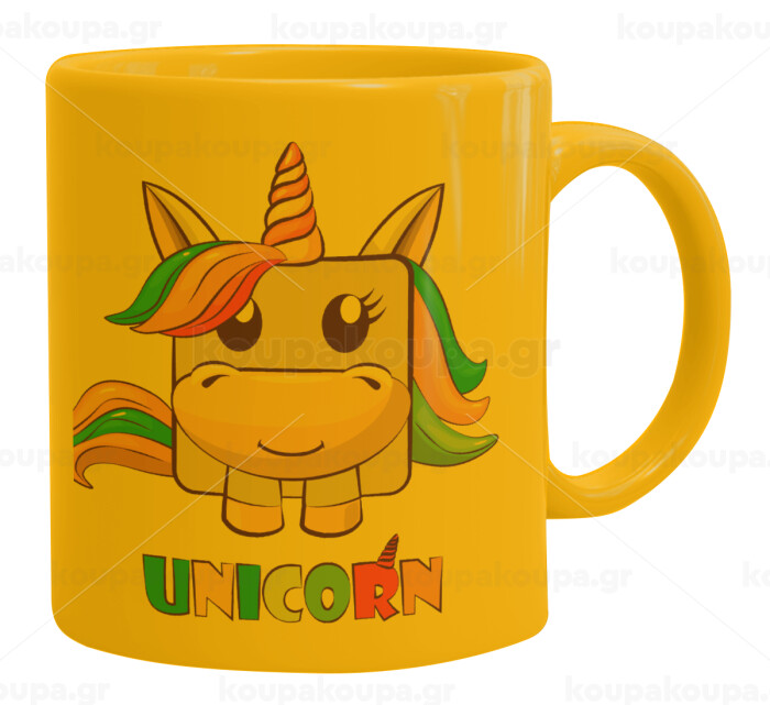 Unicorns cube, Κούπα, κεραμική κίτρινη, 330ml