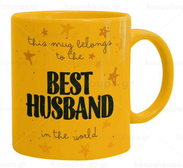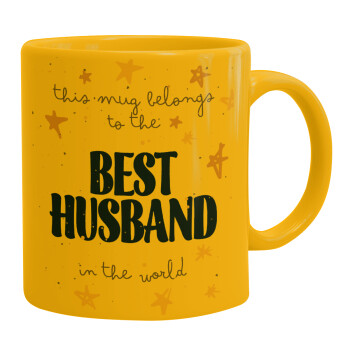 This mug belongs to the BEST HUSBAND in the world!, Κούπα, κεραμική κίτρινη, 330ml