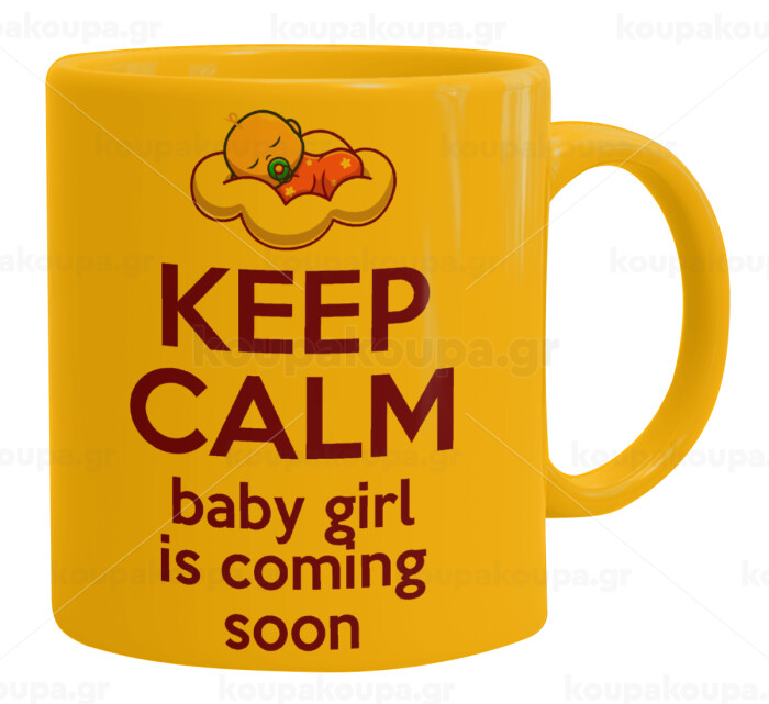 KEEP CALM baby girl is coming soon!!!, Κούπα, κεραμική κίτρινη, 330ml