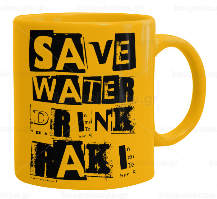 Save Water, Drink RAKI, Κούπα, κεραμική κίτρινη, 330ml